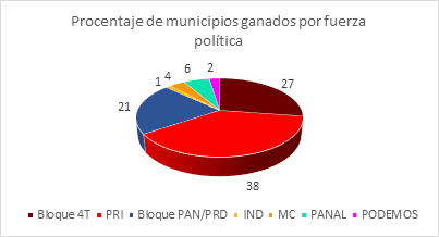 ¿Quiénes sumaron fuerzas a su partido tras la elección? Sin duda el PRI es el ganador de la contienda al obtener 32 ayuntamientos, uno más que en 2016 (31), lo que representa el 38% del control territorial. Además, el Partido Nueva Alianza Hidalgo (PANALH) ganó un espacio más respecto a 2016 al lograr 5 triunfos. Asimismo, es notable la aparición del nuevo partido local Podemos que obtuvo 2 victorias en municipios que el PRI gobernaba.